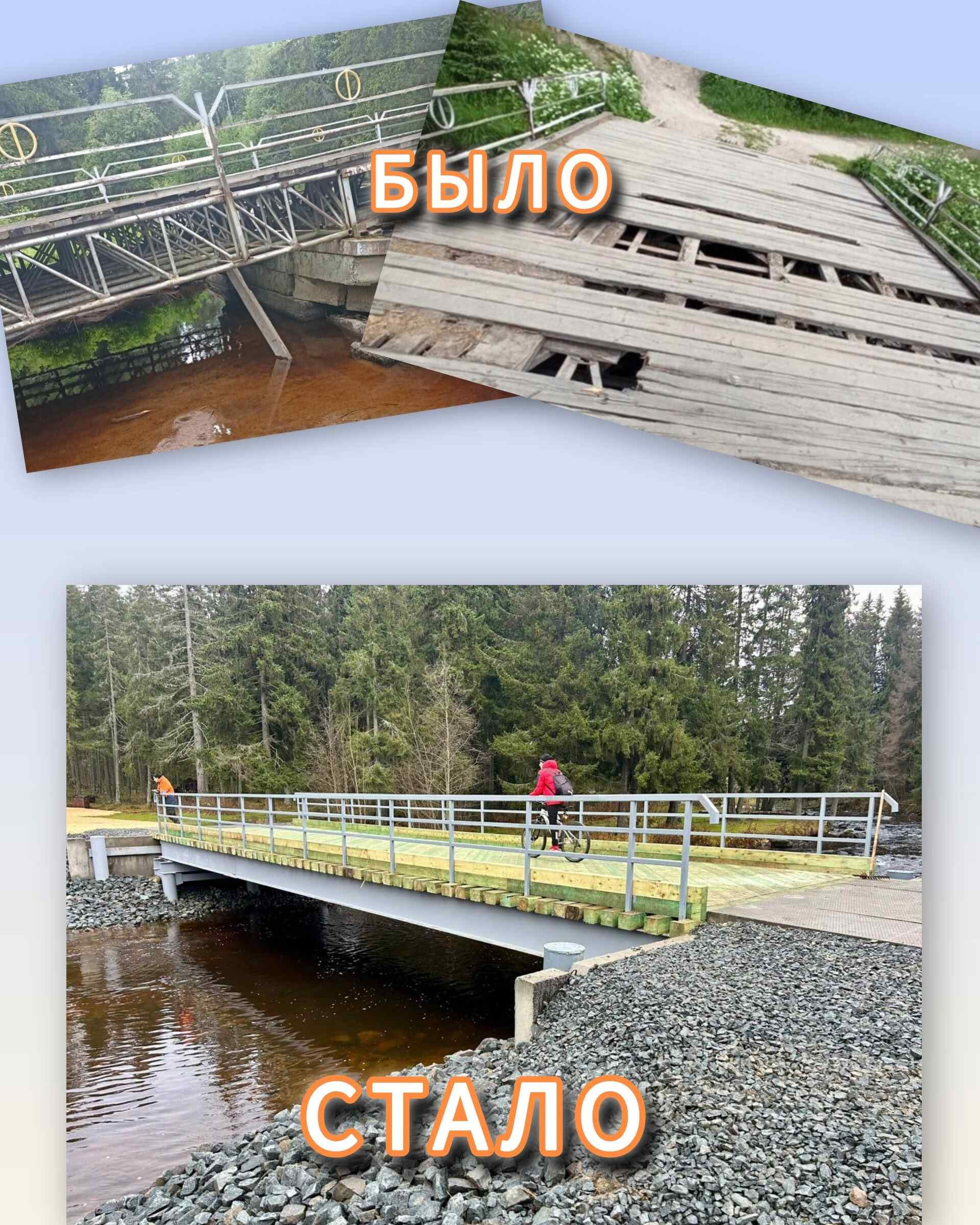 Напомним, что техническое состояние старого моста через реку Лососинка требовало проведения срочного ремонта. В адрес администрации города и депутата поступали обращения горожан о том, что ходить по мосту небезопасно.