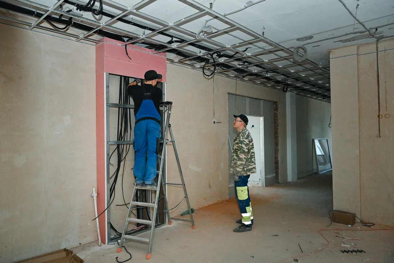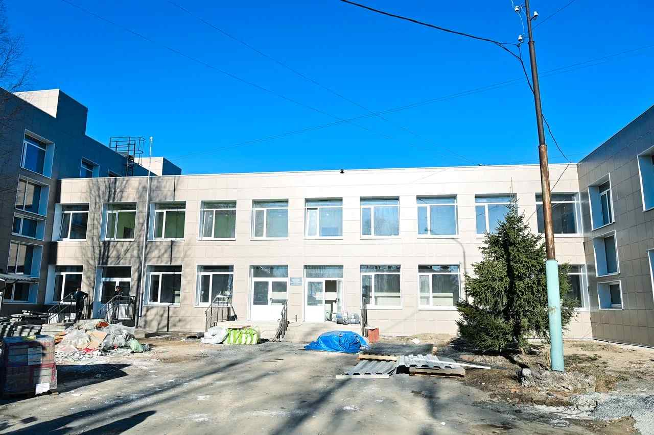В школе № 35 уже обновили фасад и заменили инженерные сети водоснабжения, водоотведения и отопления. Сейчас подрядчик выполняет общестроительные и отделочные работы.